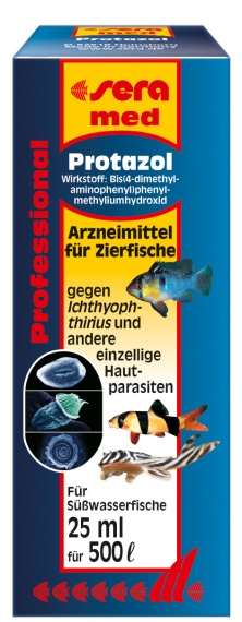L'agent actif que contient le protazol, à base de Vert de Malachite, est très efficace contre les parasites au stade larvaire, tels que l'Oodinium et contre d'autres protozoaires provoquant des maladies chez les poissons. Il peut être utilisé sans danger pour traiter les Axolotls et les poissons, même en présence d'escargots et de crevettes.